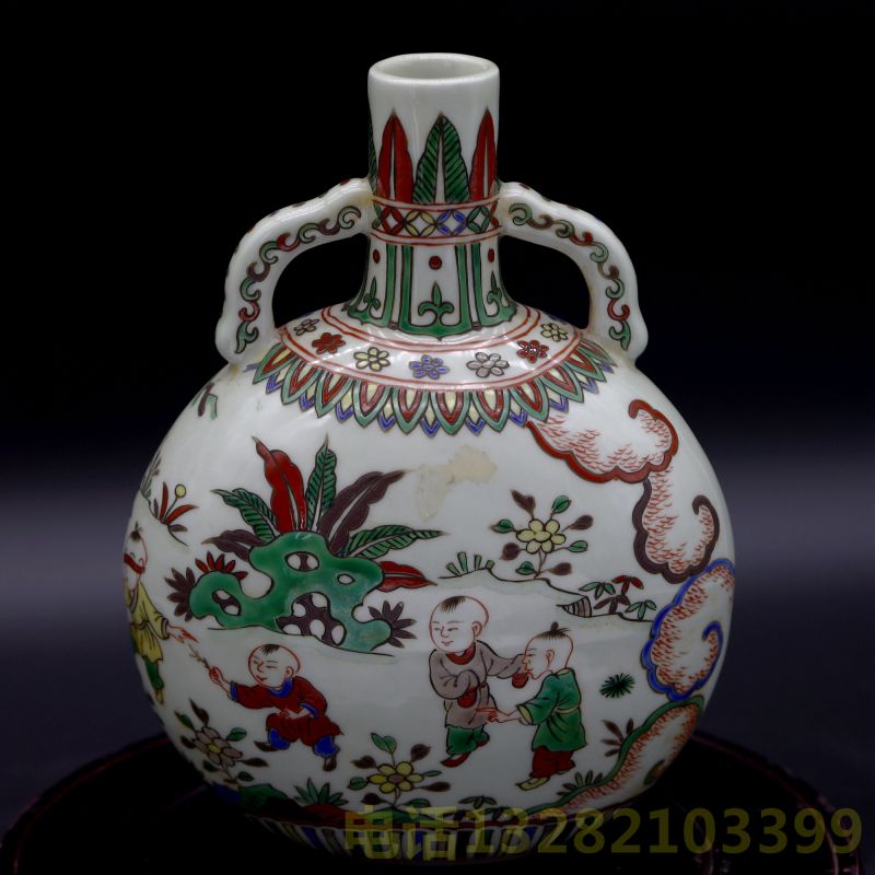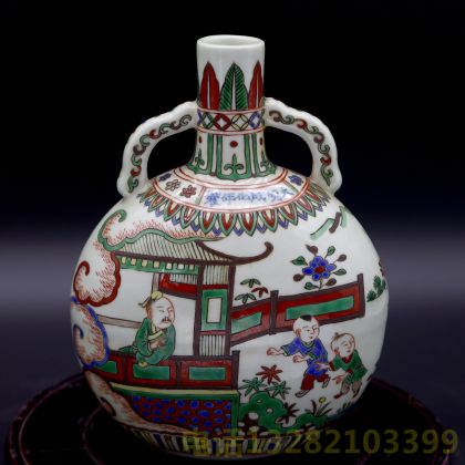 大明成化年制青花款五彩婴戏图抱月瓶