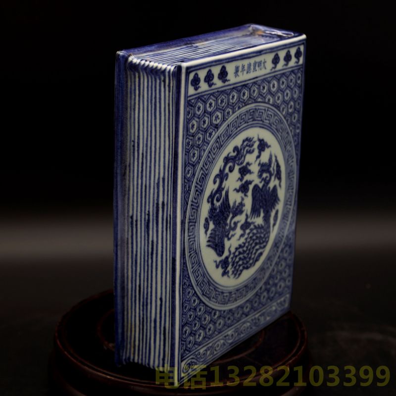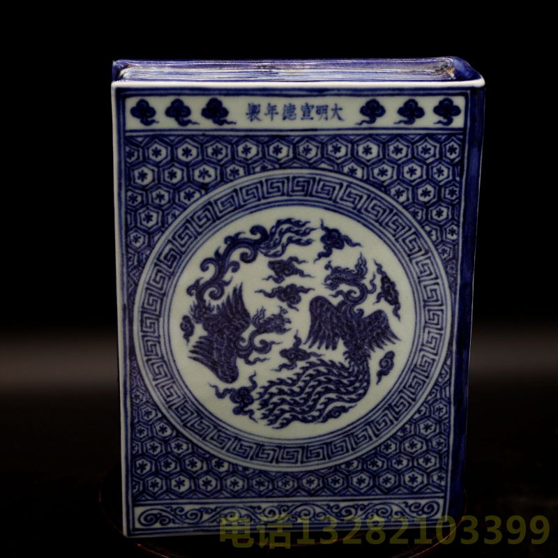 大明宣德年制款云凤纹梵文书形瓷