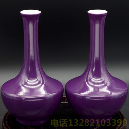 大清乾隆年制青花六字款单色釉长颈瓶一对