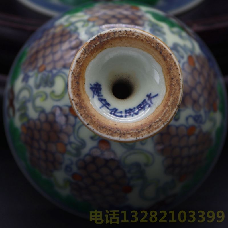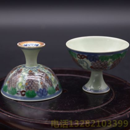 大明成化年制款孔雀高足杯一对