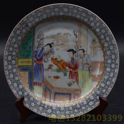清代粉彩描金人物故事盘