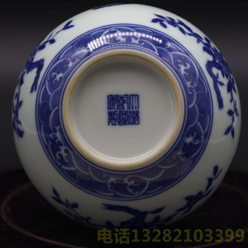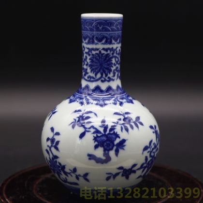 大清乾隆年制青花六字款青花折枝纹天球瓶