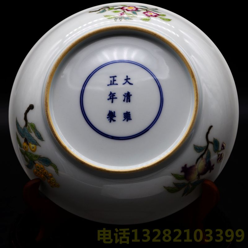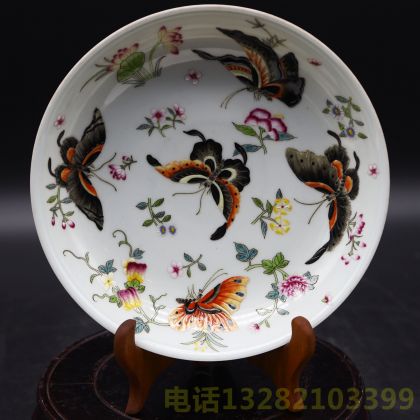 大清雍正年制青花六字款粉蝶折枝纹盘