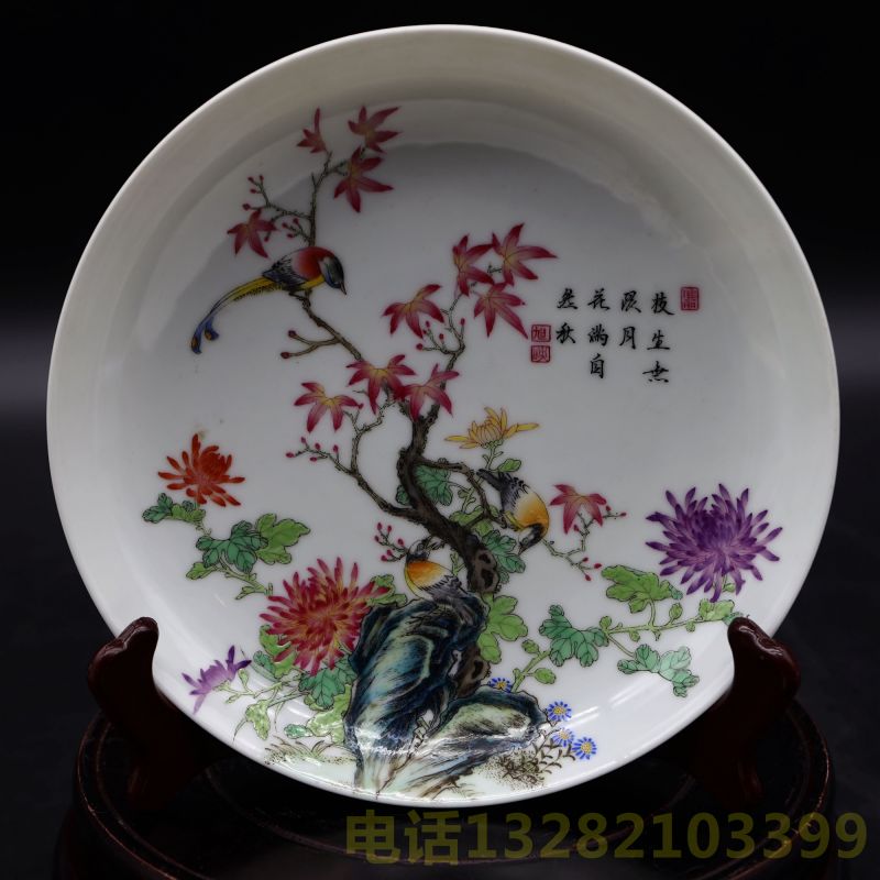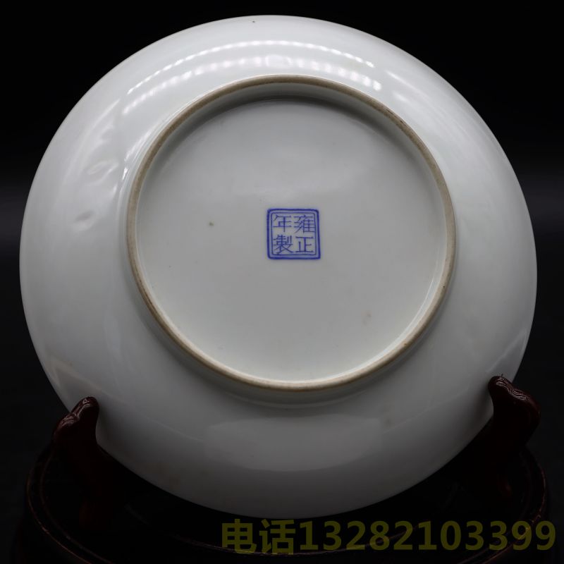 雍正年制四字款珐琅花卉诗文盘