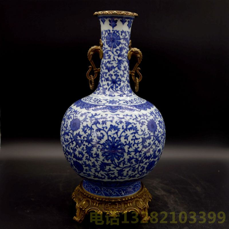 大清乾隆年制青花缠枝莲赏瓶