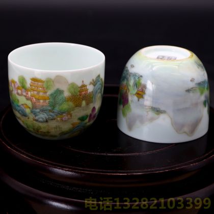 乾隆年制四字珐琅款画珐琅彩卧足杯一对