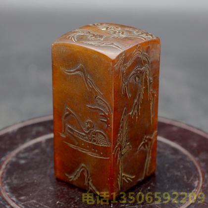 山水人物纹田黄印