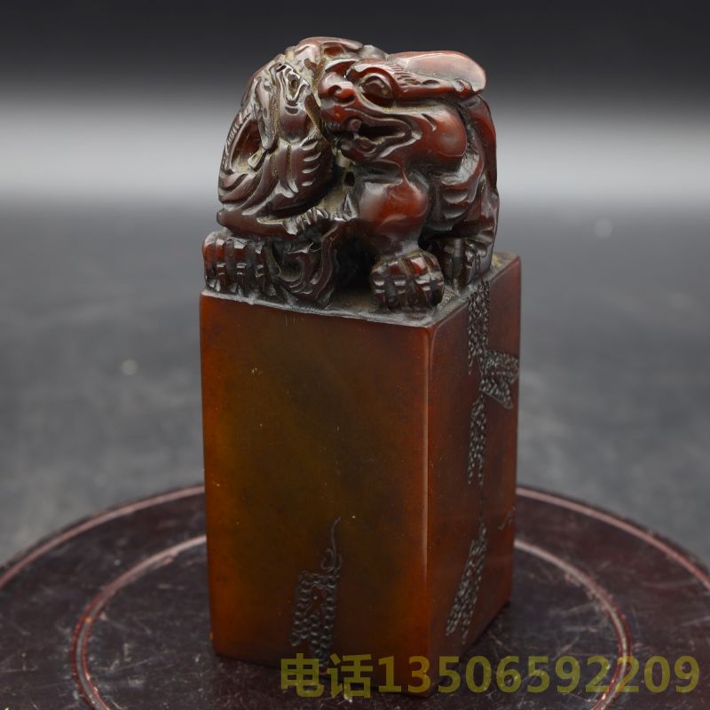 “康熙之印”石雕狮子滚绣球田黄印