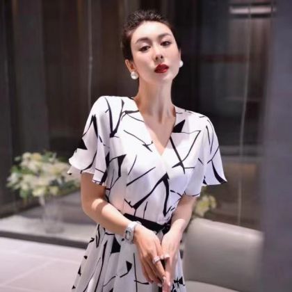易创众爆款推荐印花连衣裙0077 S