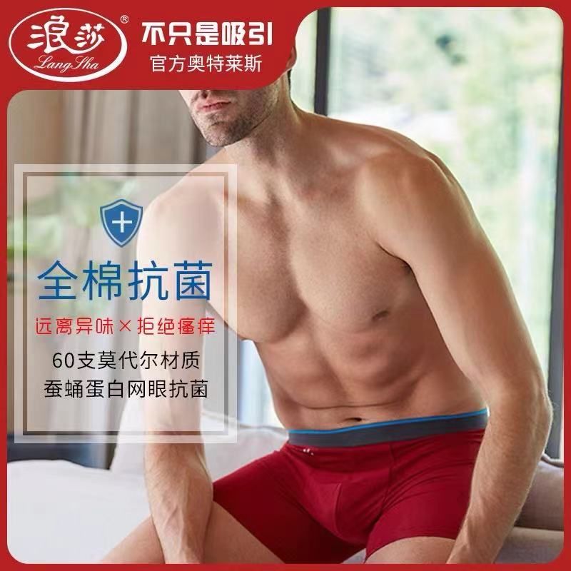 浪莎蓝也系列60支莫代尔男士内裤吸汗透气薄款冰丝感舒适平角裤