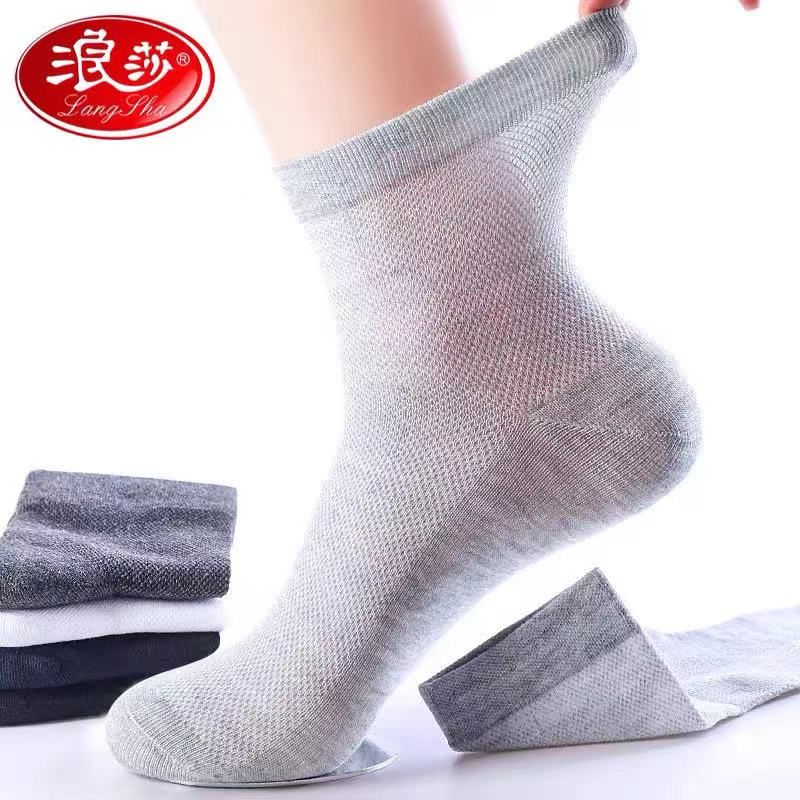 浪莎男士袜子夏季薄款中筒纯棉防臭白色中筒吸汗夏天透气品牌男袜 黑2深灰2浅灰 均码