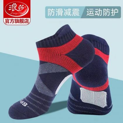 浪莎篮球袜毛巾底运动袜子男士春秋短袜透气马拉松跑步专业精英袜 深蓝 男士抗菌专业运动袜
