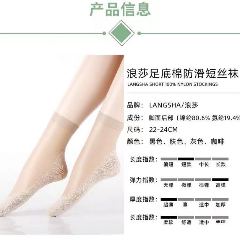 浪莎短丝袜女黑色夏季超薄款耐磨防滑袜子脚尖女士透明水晶丝短袜
