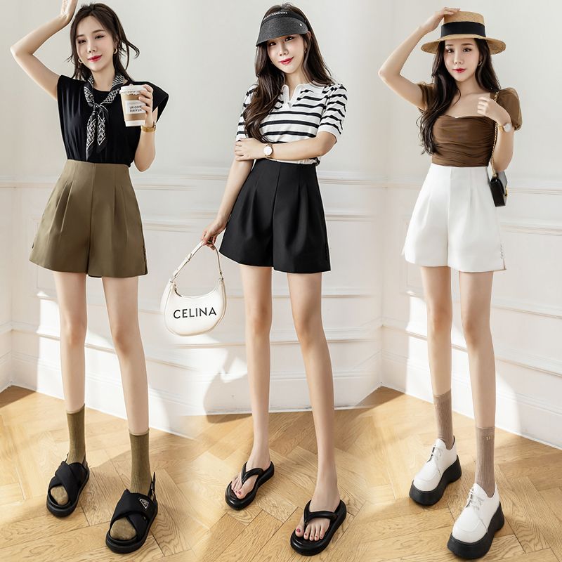 休闲短裤女2022夏新款高腰百搭韩版西装短裤A字宽松排扣阔腿裤女 卡其色 S