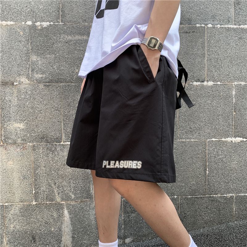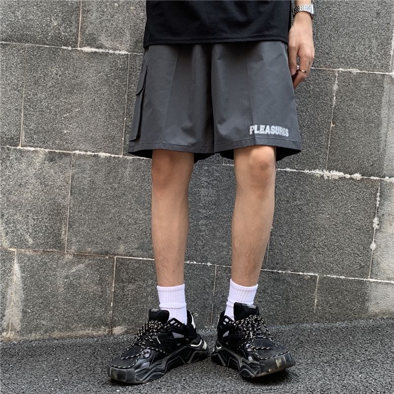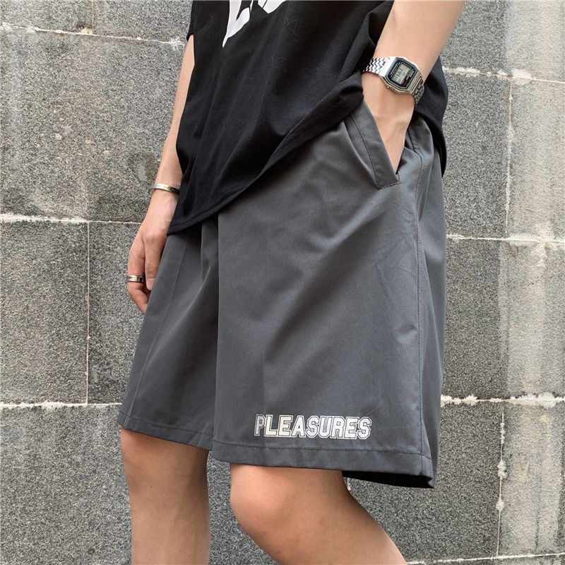 夏季新款薄款5分裤子男韩版潮流休闲短裤字母宽松五分裤男裤 灰色 M