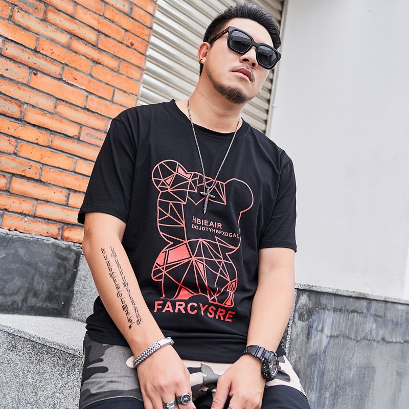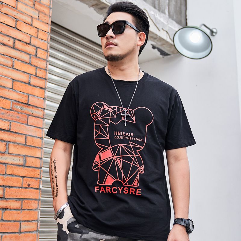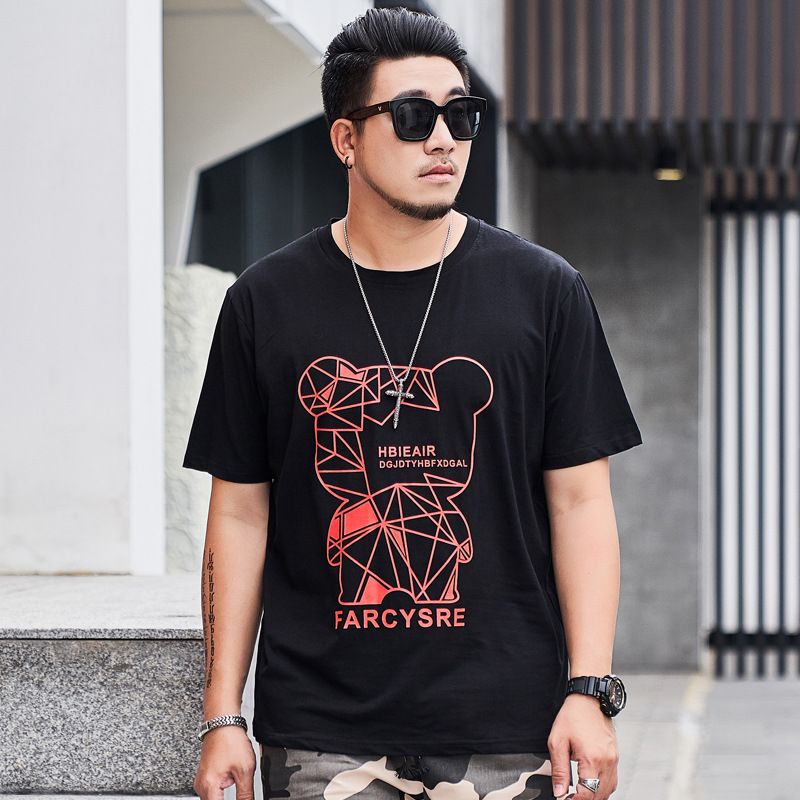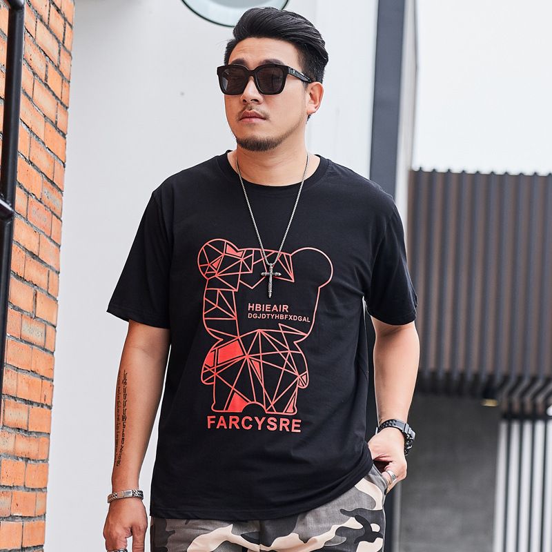 潮牌胖哥小熊印花半袖衫加大码男装时尚都市短袖T恤宽松纯棉休闲 黑色 XL