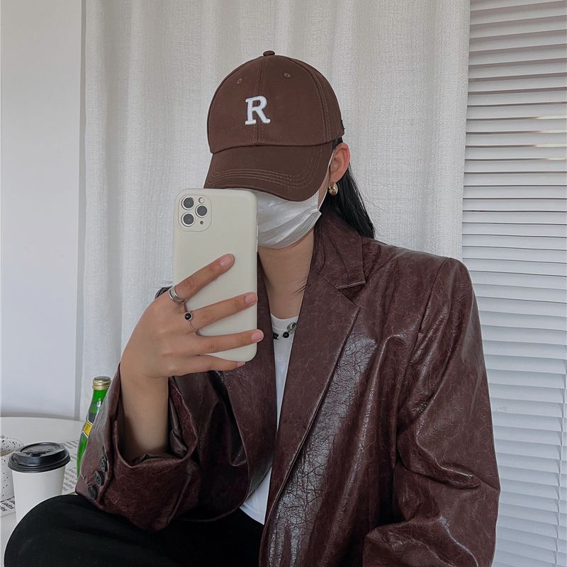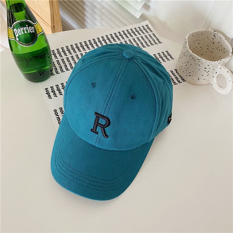 网红同款R字母刺绣棒球帽简约百搭显脸小鸭舌帽 孔雀蓝