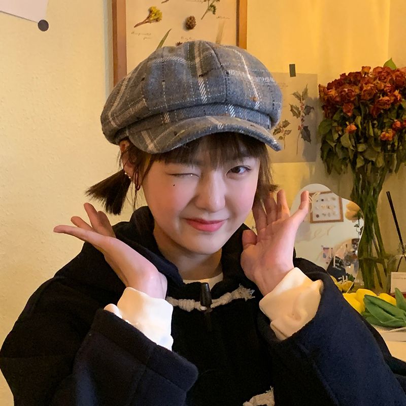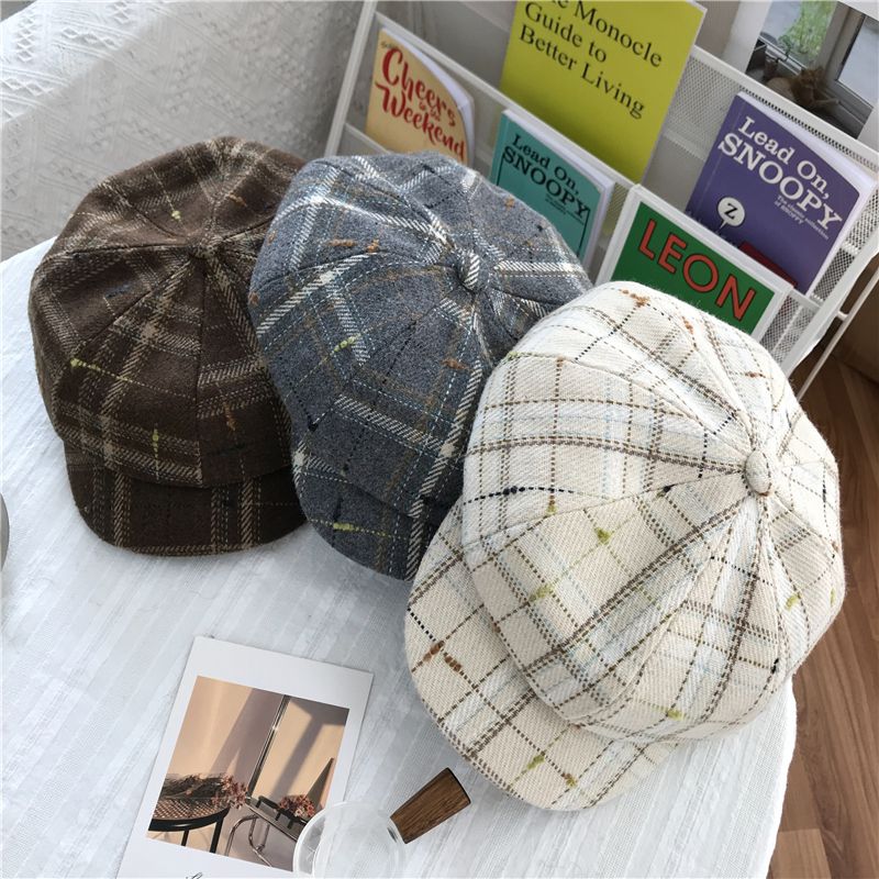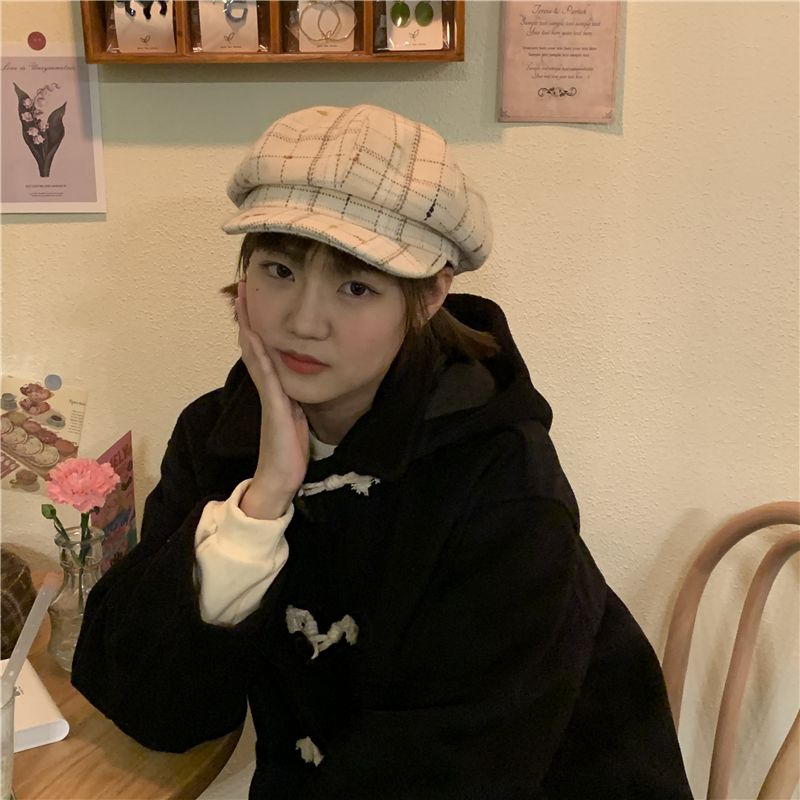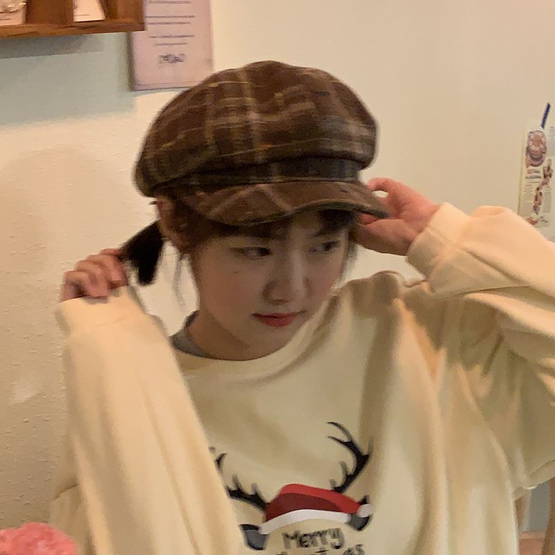 秋冬英伦风复古画家帽格子棒球帽韩版百搭帽子女 咖啡色 可调节