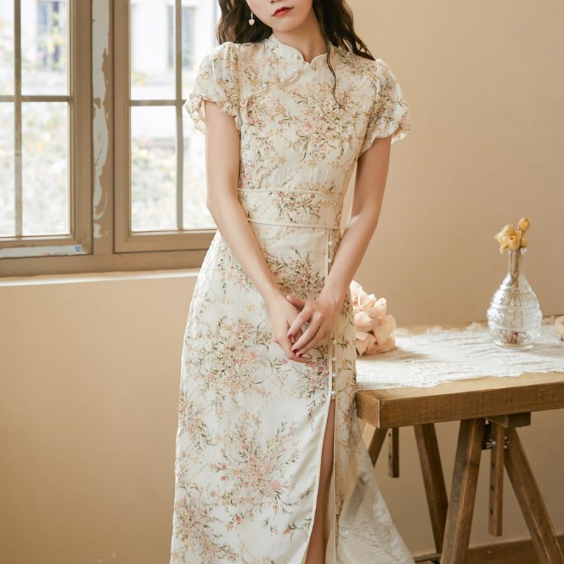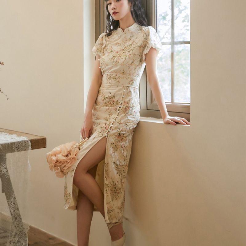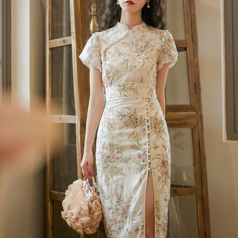 2022年夏季新款刺绣改良旗袍连衣裙 图色 S