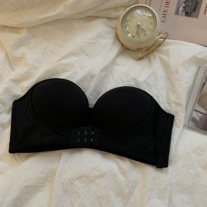 无肩带内衣女聚拢防滑抹胸内衣小胸隐形文胸美背裹胸罩 黑色 32/70AB通杯
