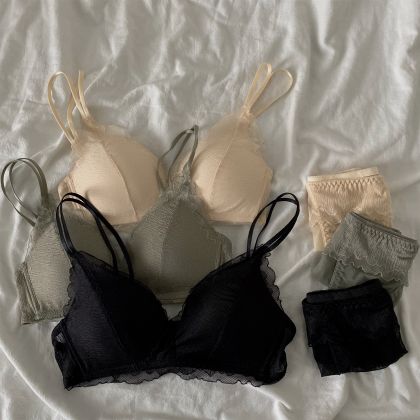 韩版蕾丝内衣薄款女无钢圈胸罩小胸聚拢法式文胸套装 绿色 32/70AB通杯