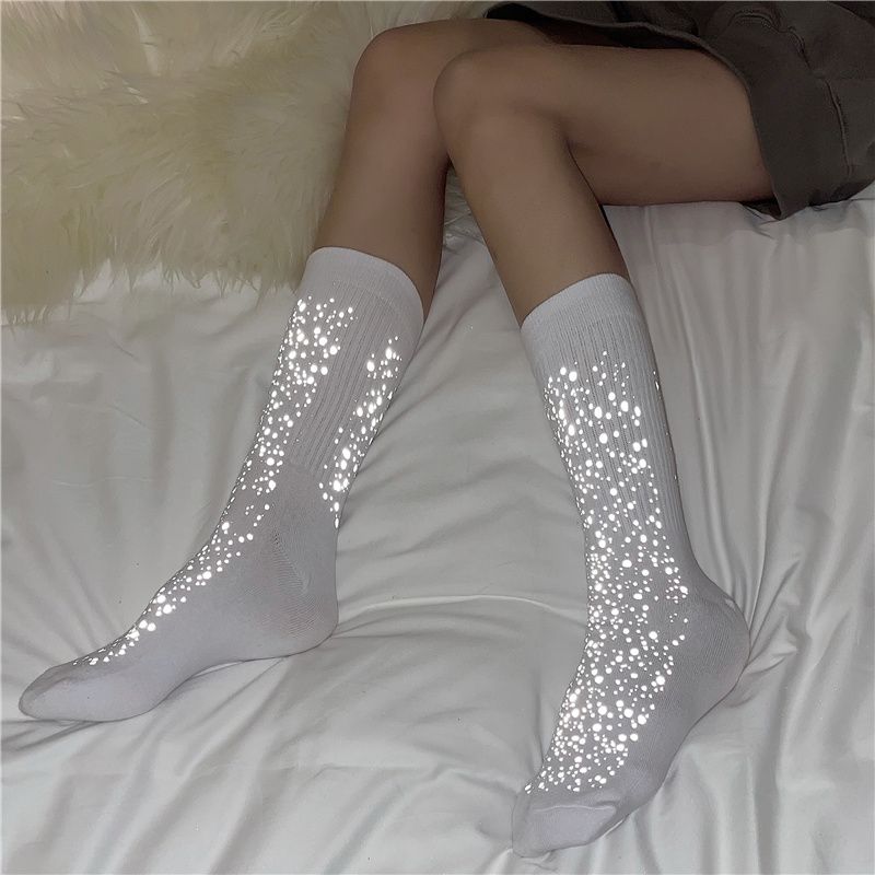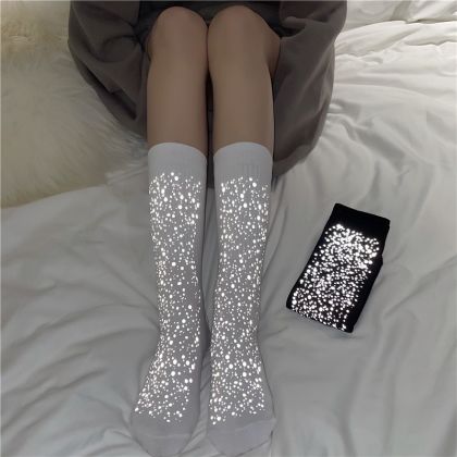ins韩版个性反光中筒男女同款情侣袜子 白色 均码