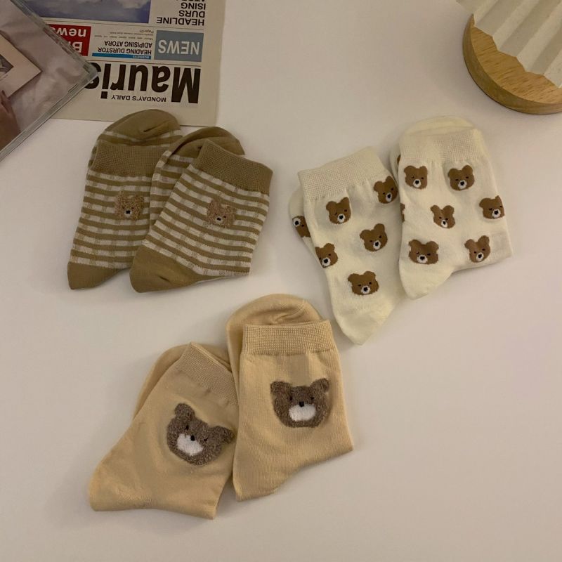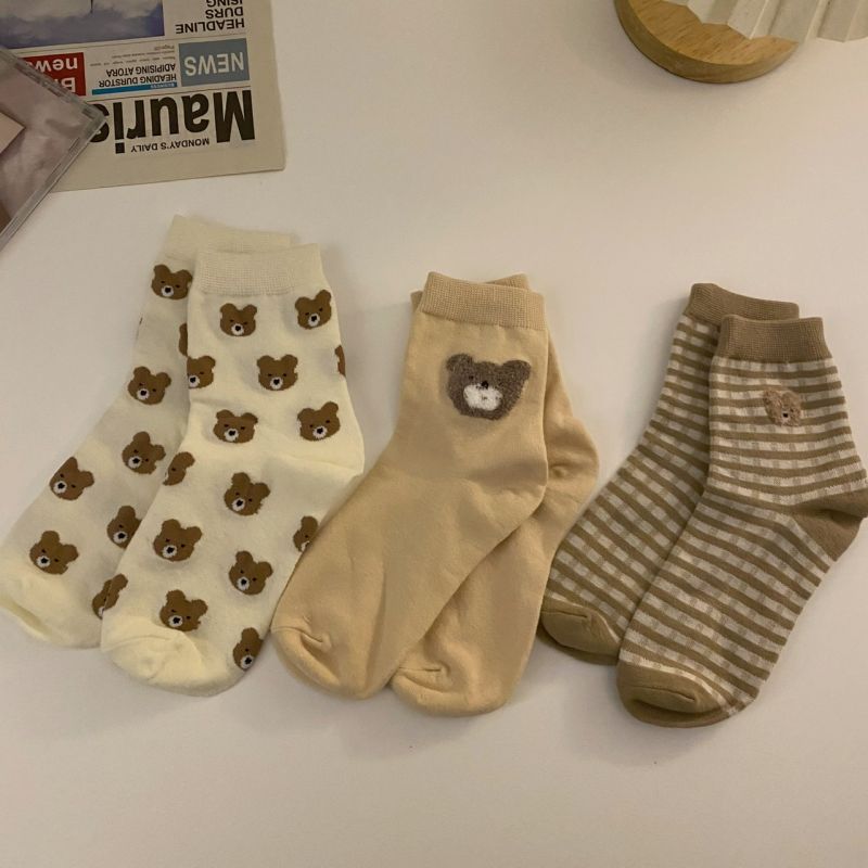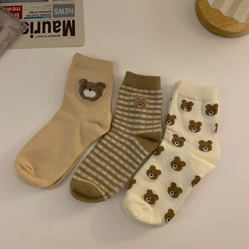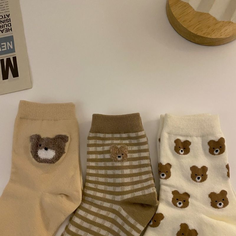 日系可爱中筒袜纯棉袜子长袜卡通长筒棉袜女袜3双装 图色 均码